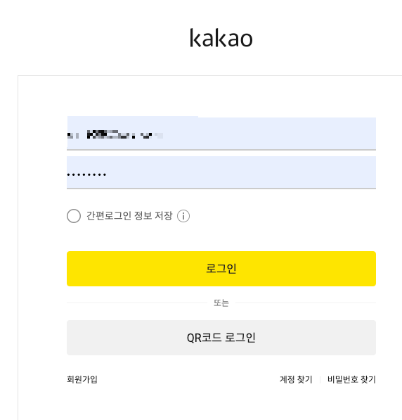 - 카카오 로그인 항목이 추가됨