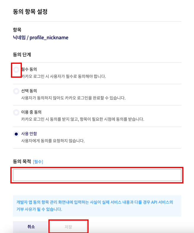 - 동의 목적 : 원하는 대로 작성