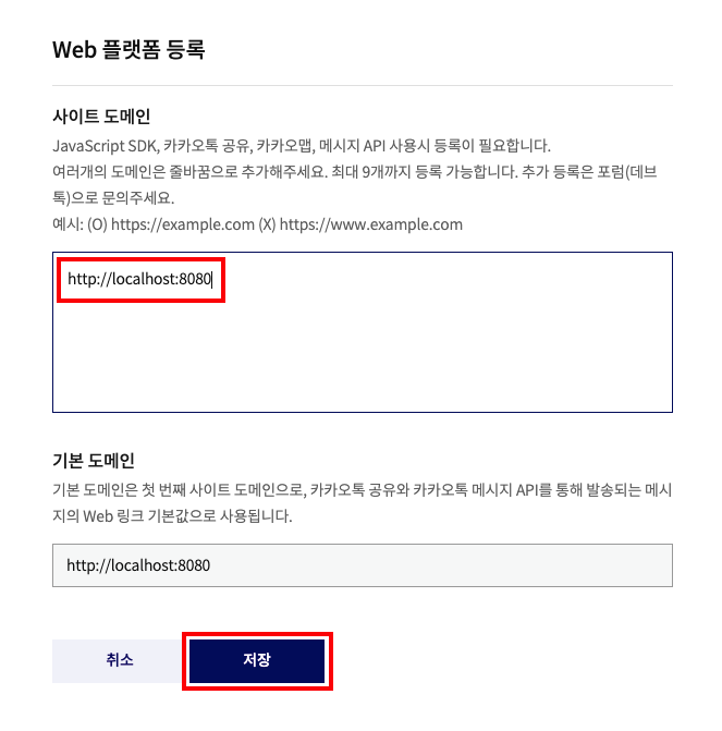 - Redirect URI 등록 > http://localhost:8080/login/oauth2/code/kakao 저장