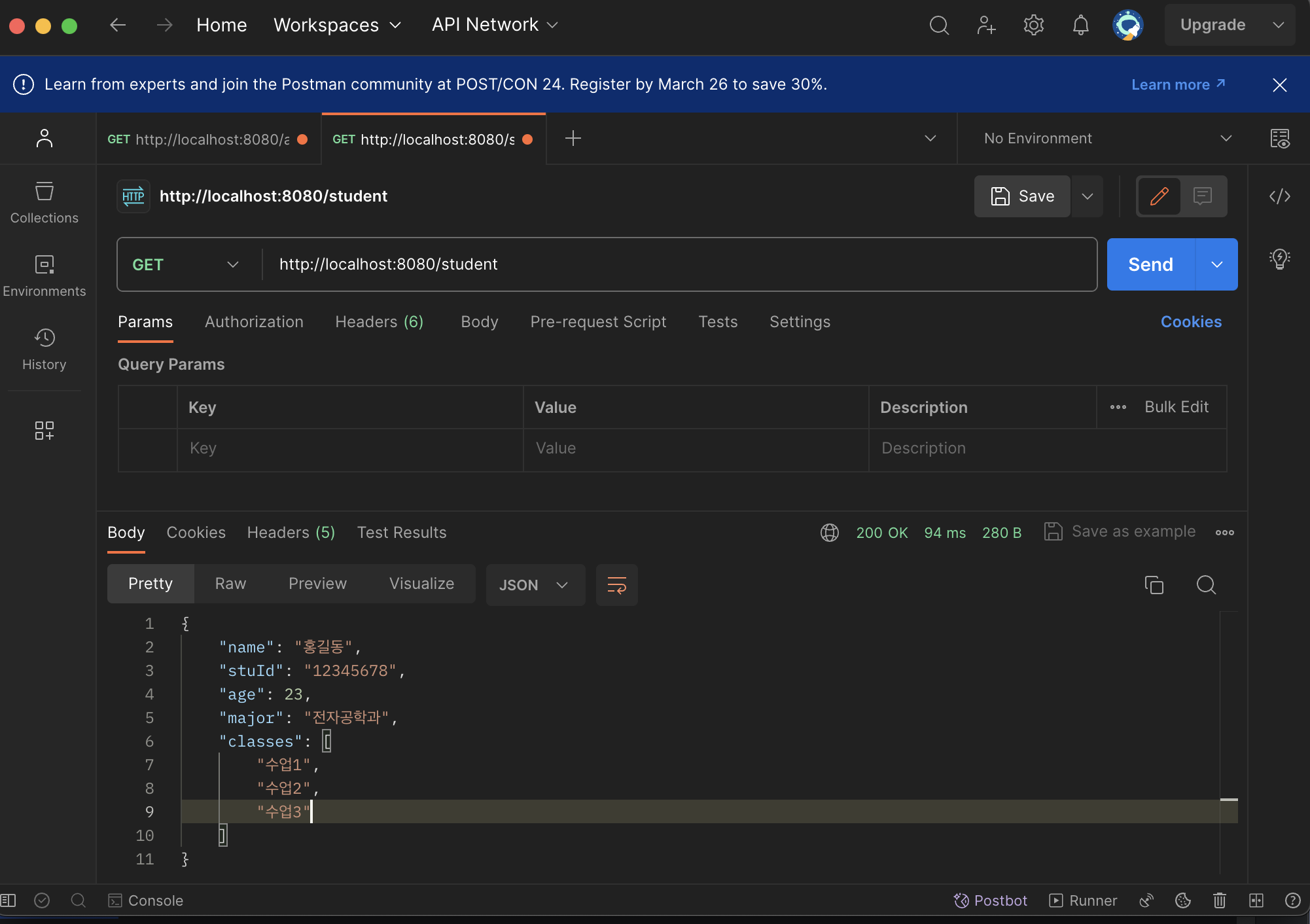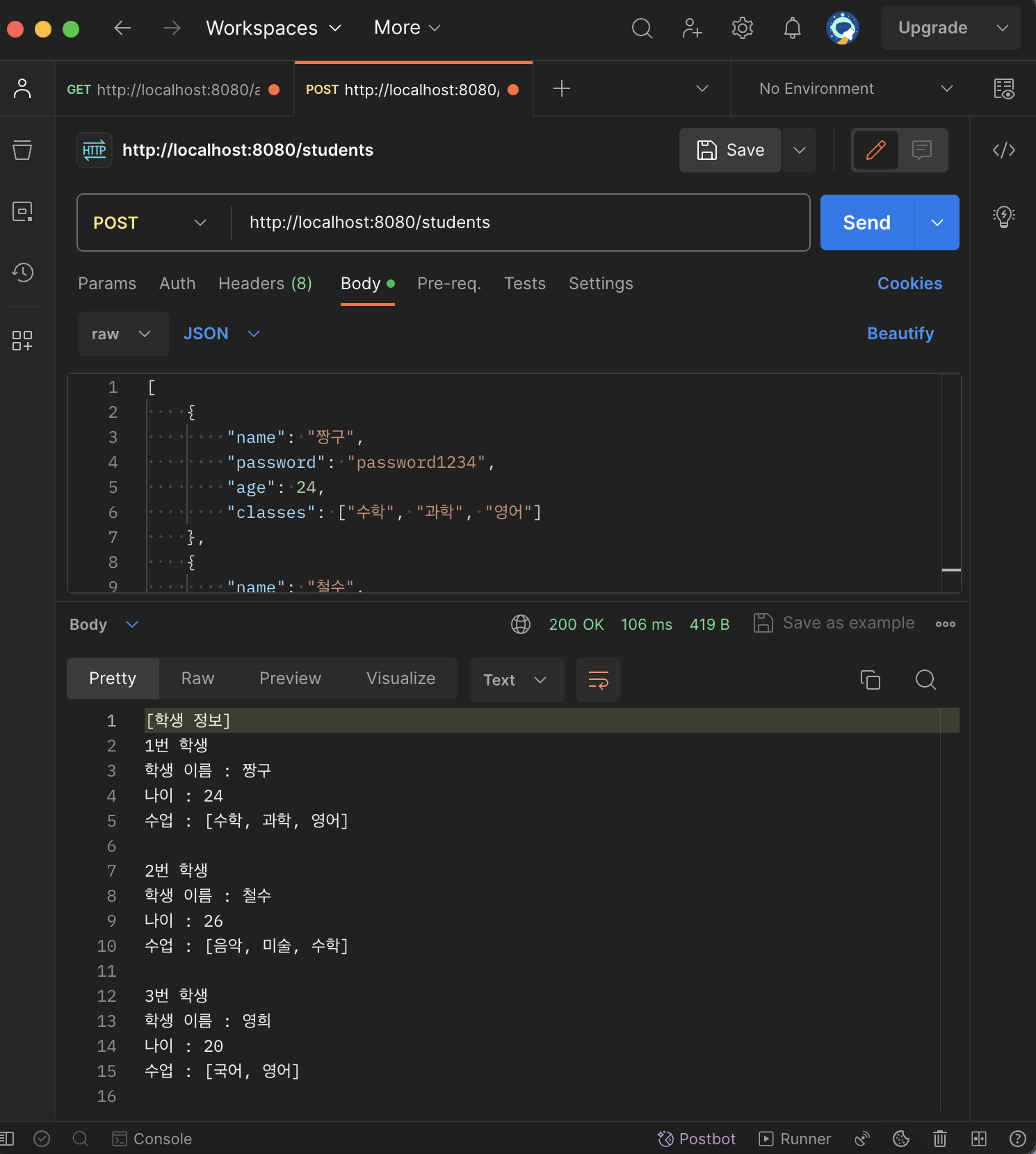 - 학생 정보 여러개 전송