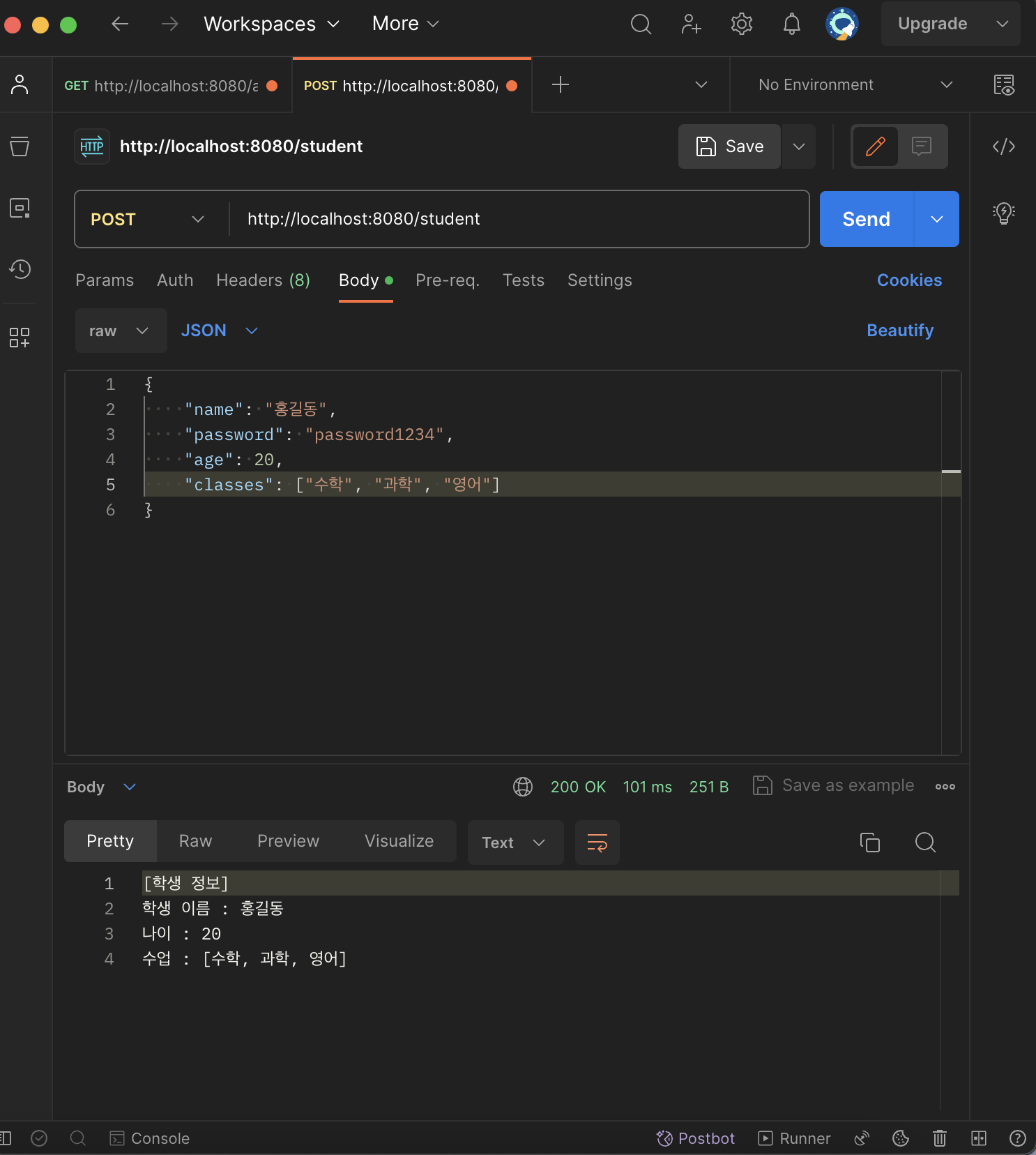 public String postStudent(@RequestBody Student student) {