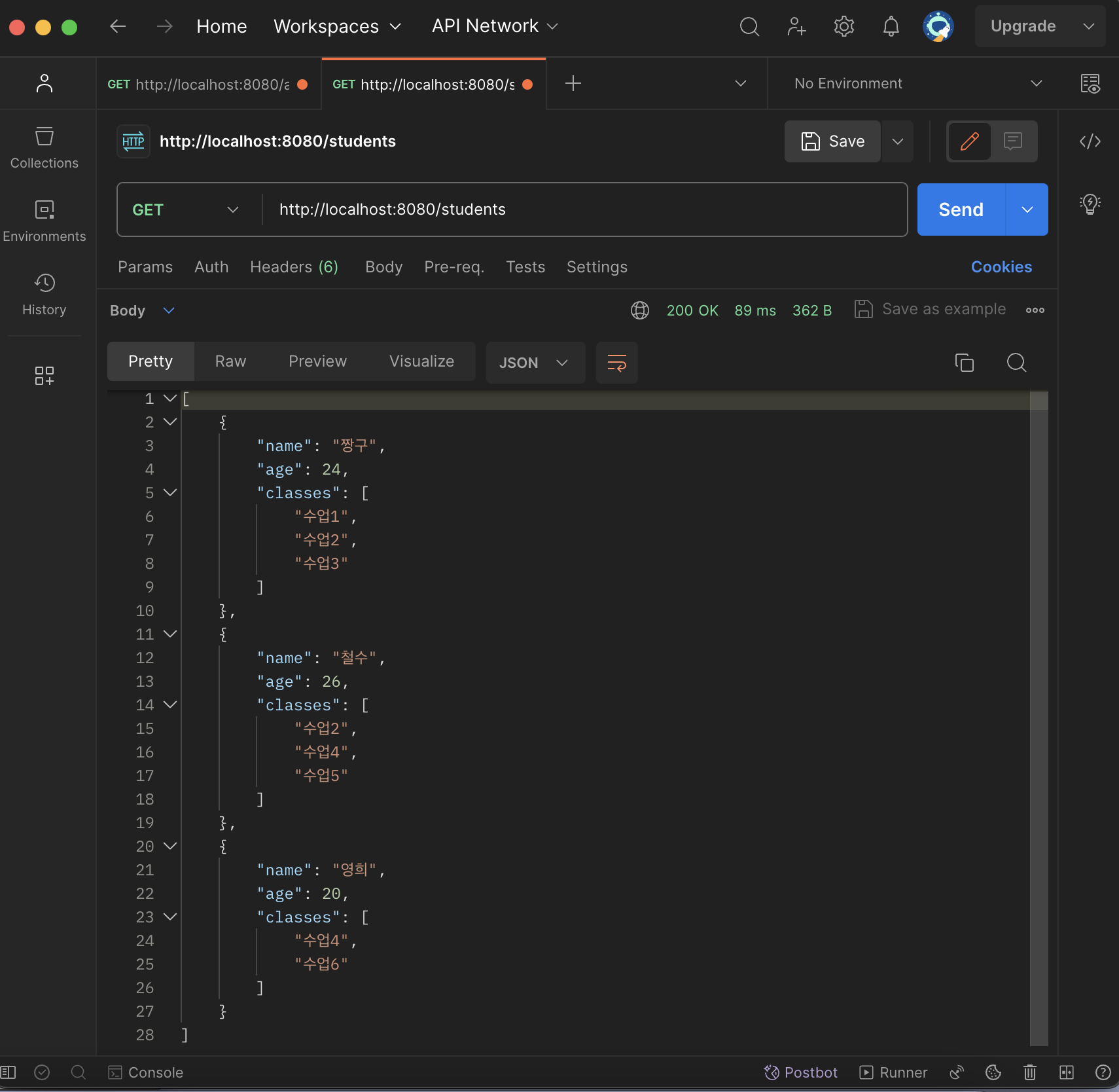 - 학생 정보 여러개 수신