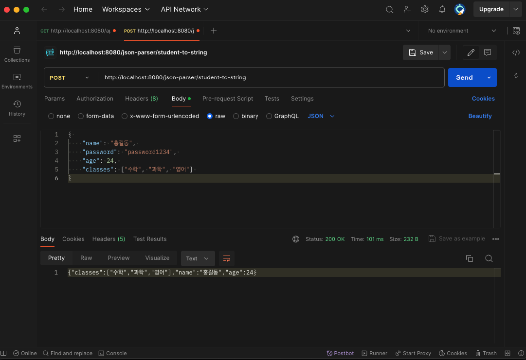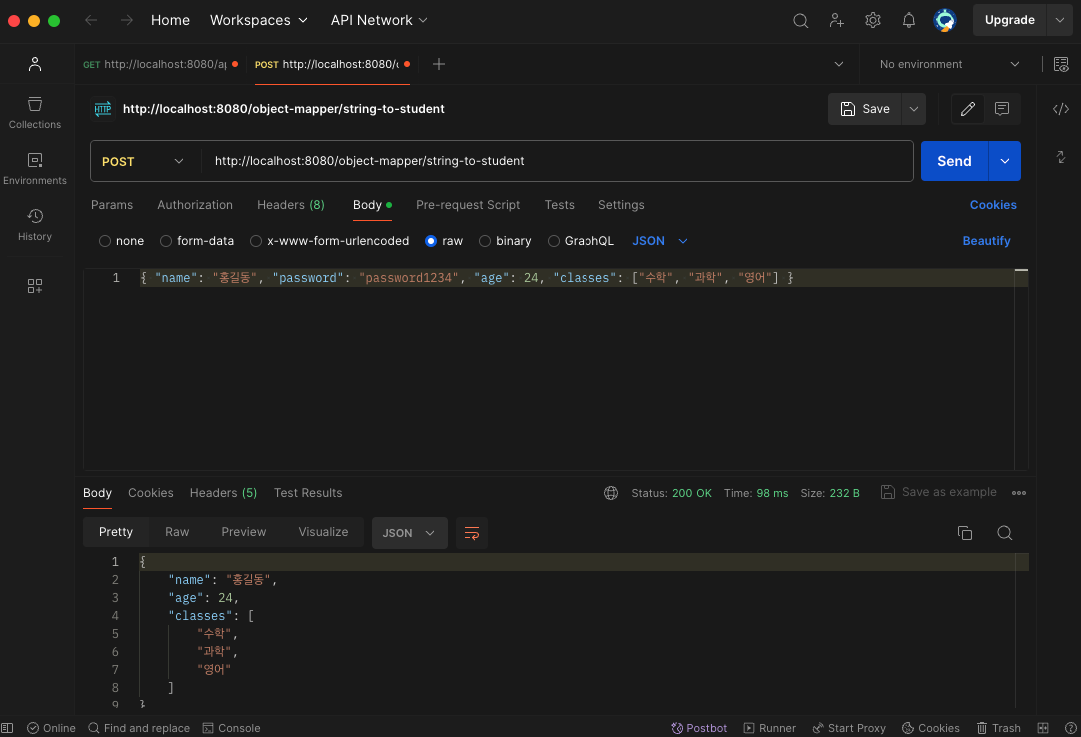 - objectMapper.writeValueAsString(student) 로 바로 JsonString으로 변환