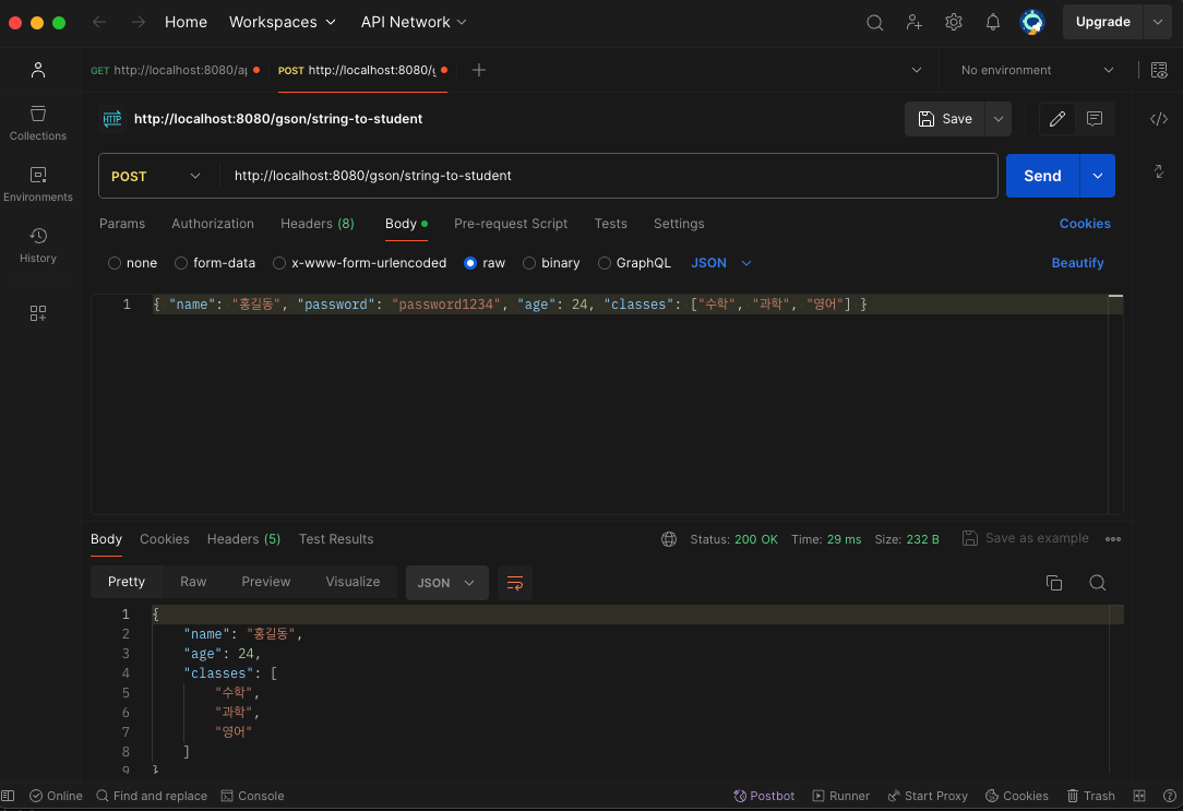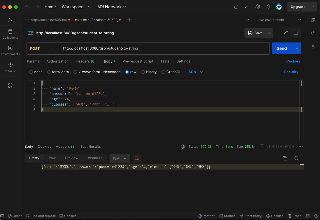 - gson.toString 을 통해서 JsonString으로 변환